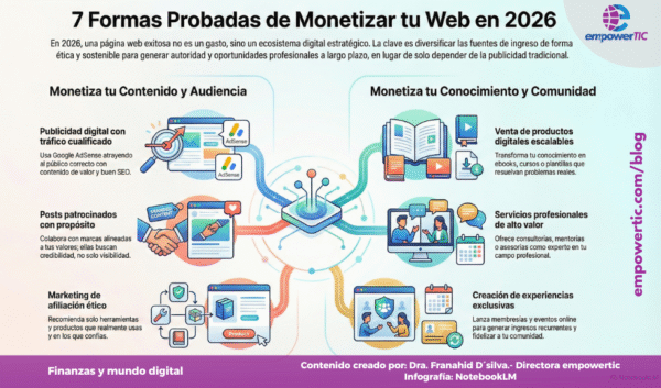 A continuación, te compartimos las 7 formas de monetización web que realmente funcionan en 2026, especialmente si eres docente, investigador, creador de contenido o emprendedor digital.