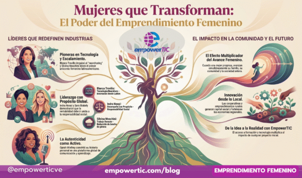En EmpowerTIC creemos que el emprendimiento femenino no es solo una historia de negocios. Es, sobre todo, una historia de transformación social. Cada vez que una mujer crea una empresa, lidera una innovación o abre una oportunidad para otras personas, está redefiniendo el significado del éxito. No se trata únicamente de crecimiento económico; se trata de impacto, resiliencia y visión.